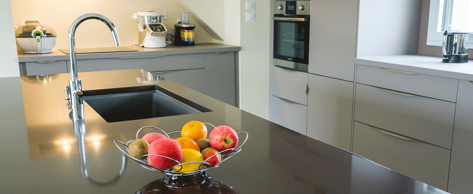 La Marbrerie Denis Jean-Luc maîtrise la réalisation de vos plans de travail pour vos cuisines en granit, marbre, quartz, pierre, céramique, ardoise, schiste… Présents de la prise de mesures jusqu’à la livraison et la pose, nous vous proposons aussi des devis gratuits, des conseils personnalisés
